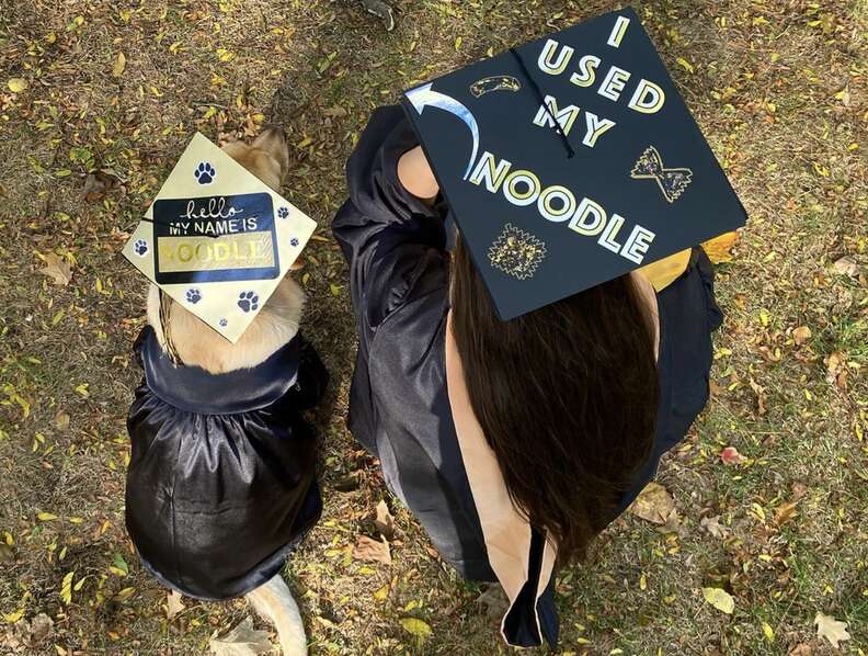 Noodle walked proudly in Purdue University’s graduation ceremony, wearing a fitted black gown and her aptly labeled cap. When it was over, the accomplished girl celebrated the best way she knew how.