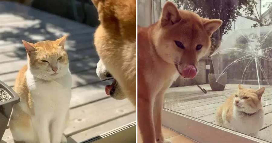 這只叫Paisen的大橘貓卻不一樣,平時在家一個貓玩,出來遛遛發現隔壁竟然住著一只毛色和自己差不多的柴柴Marco。