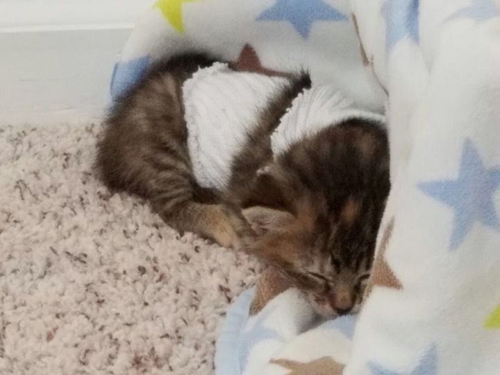 Khi một gia đình đang xem xét những con mèo cứu hộ tại một PetSmart địa phương ở Tây Bắc Raleigh, Bắc Carolina, họ đã được giới thiệu với một chú mèo con mồ côi nhỏ 3-4 tuần tuổi, cần thêm TLC.