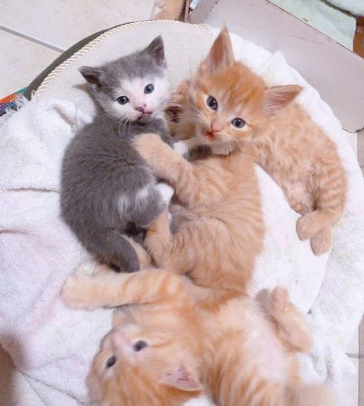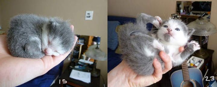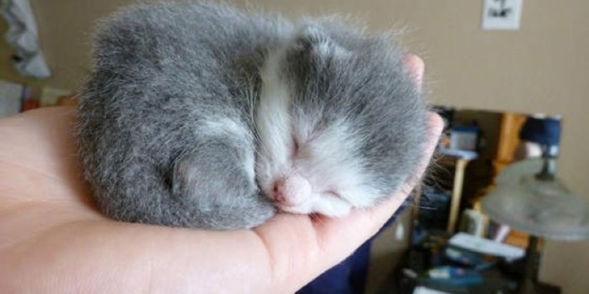 Một chú mèo con nhỏ màu xám và trắng được tìm thấy một mình khi còn là một đứa trẻ sơ sinh. Một nhóm tình nguyện viên từ Hiệp hội Cứu hộ Mèo con mồ côi Vancouver (VOKRA) đã giúp cô tìm một con mèo mẹ mới và một lứa anh chị em mèo con để chơi cùng.