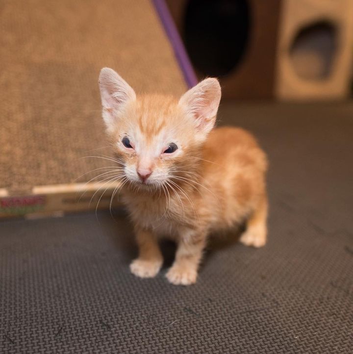 Cậu bé gừng chỉ bằng một nửa kích thước của anh chị em của mình. Trong khi hai chú mèo con khác bắt đầu cải thiện và phát triển, Benny vẫn nhỏ bé và gặp khó khăn trong việc tăng cân.