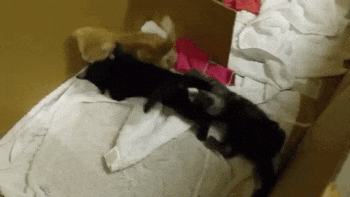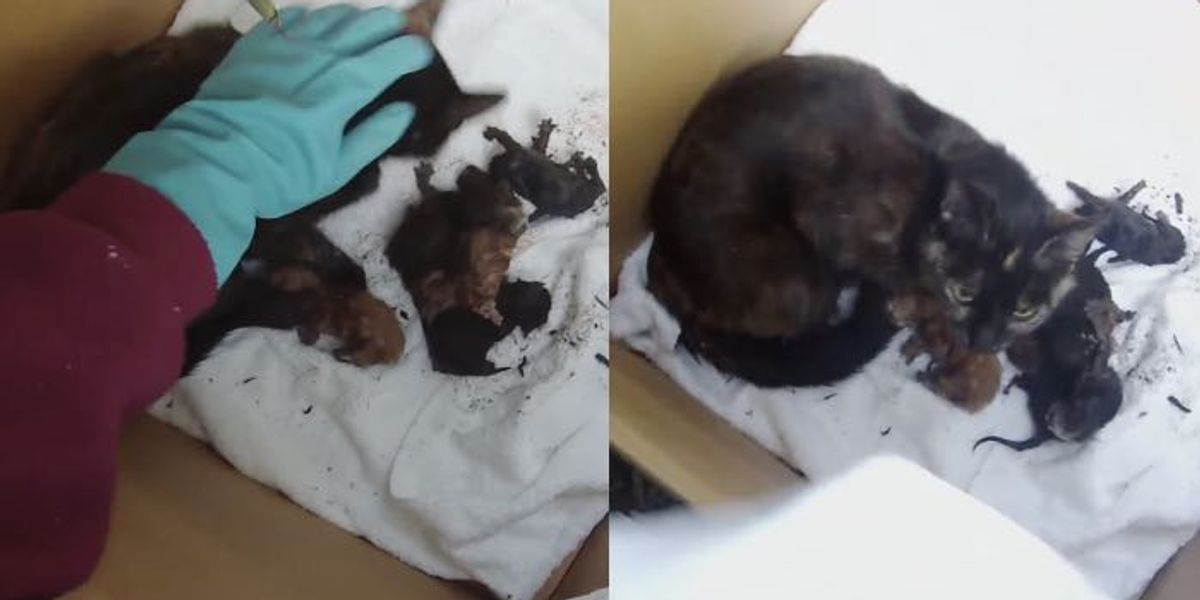 Anh ấy mang ra một chiếc hộp lớn phủ chăn để giúp chuyển những chú mèo con. Khi nhìn thấy những đứa trẻ, anh nhận ra chúng thật nhỏ bé và toàn thân phủ đầy bụi bẩn.