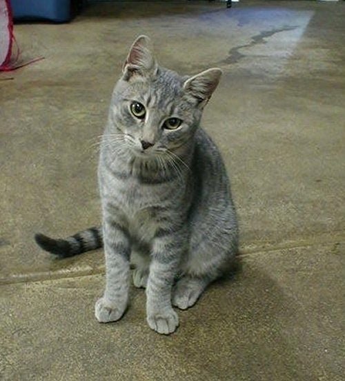 Ngoại hình: cô mèo xám mảnh khảnh với đôi mắt xanh