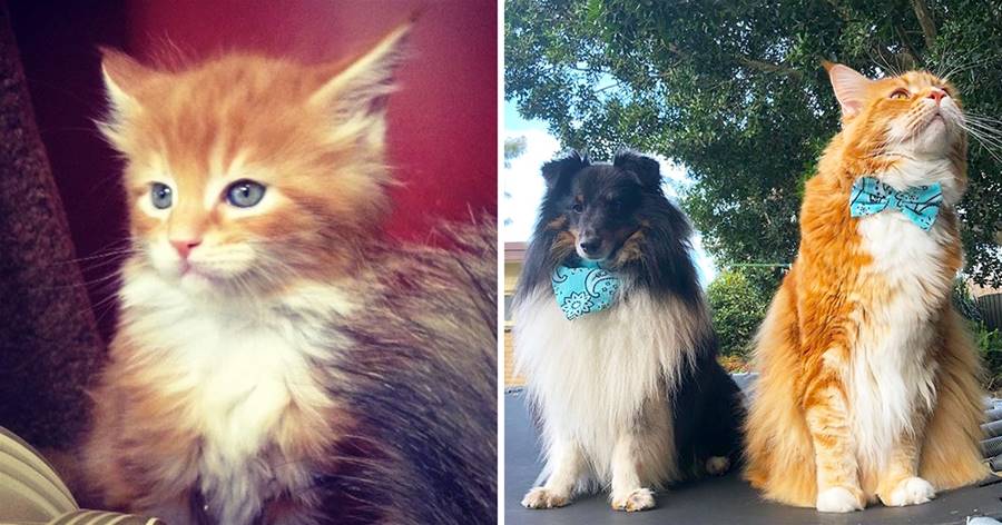 Nuôi một con thú thần thoại! Tôi tưởng đây là một con mèo nhỏ màu cam khi lớn lên cao hơn một con chó chăn cừu 1,2 mét!