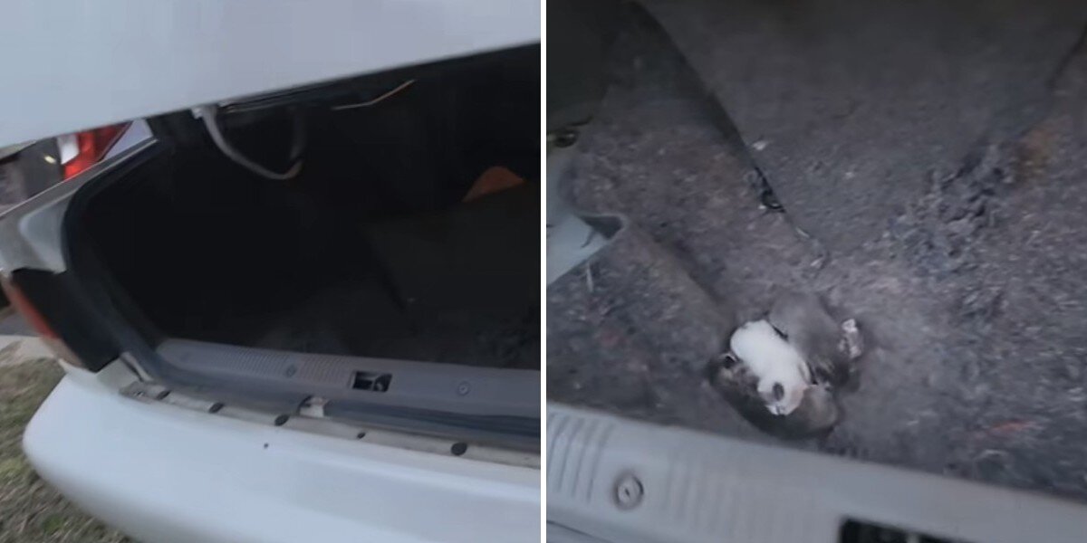 Tò mò, người đàn ông bắt đầu lục soát chiếc xe. Con mèo ban đầu đã biến mất, nhưng khi anh mở cốp xe, anh thấy một đống bốn đứa trẻ lông xù nép mình bên trong.